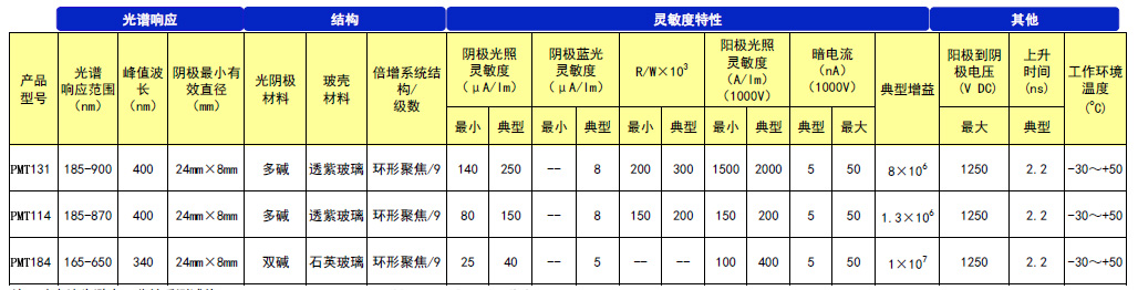 陽靈敏度Anode Sensitivity at 800nm (peak) |