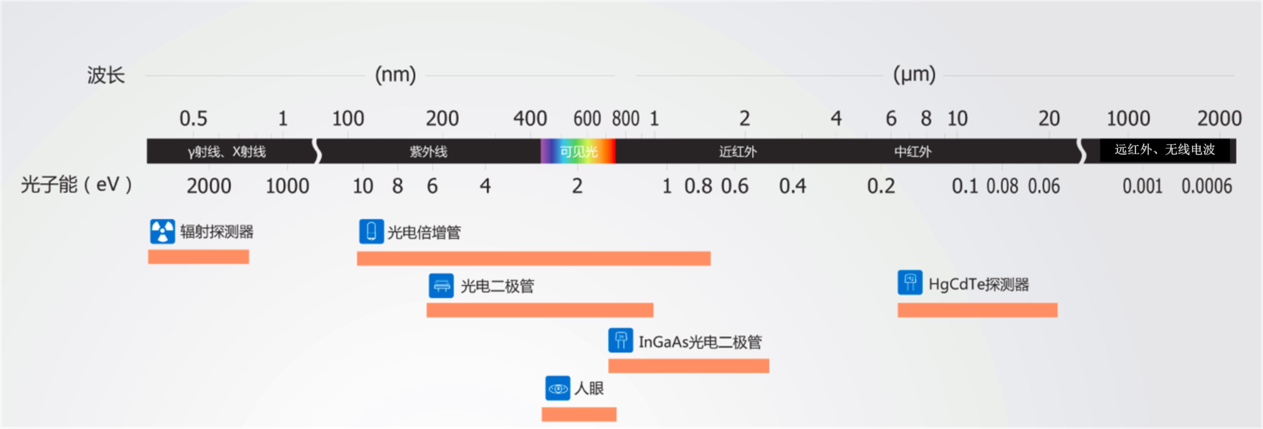 圖1 不同探測(cè)器件可探測(cè)光譜范圍