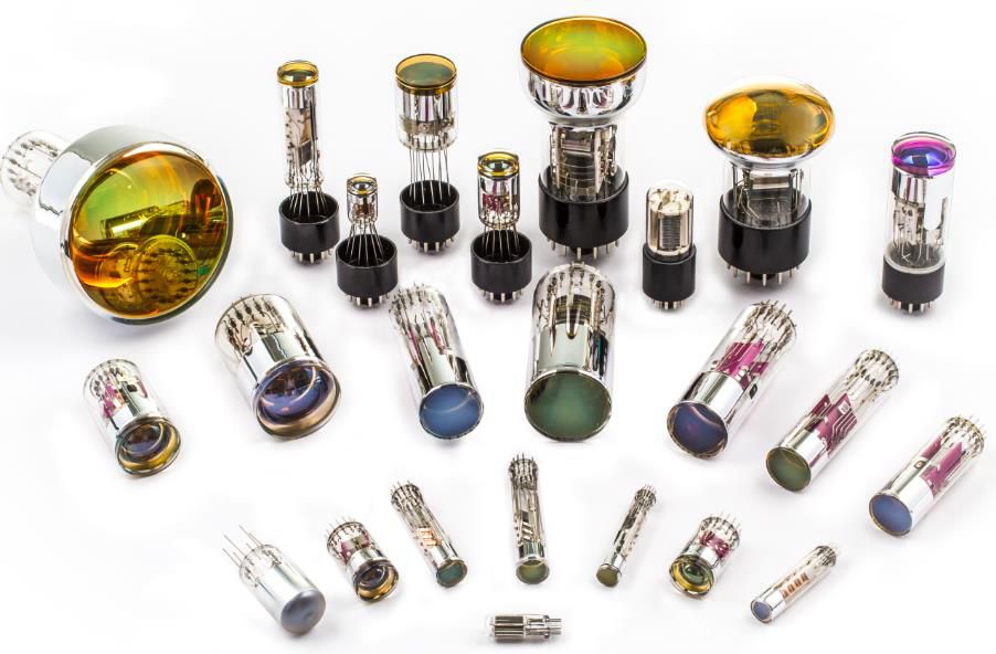 光電倍增管(Photomultiplier Tube,簡(jiǎn)稱PMT)是一種真空玻璃器件,可將光信號(hào)轉(zhuǎn)化為電信號(hào),因超高靈敏度和快速響應(yīng)等特點(diǎn)備受關(guān)注。在檢測(cè)光譜方面,其可探測(cè)約100nm~1μm范圍內(nèi)的光信號(hào)。此外,在更短波方向,如γ射線、X射線探測(cè)使用的輻射探測(cè)器,以通過(guò)各種閃爍體轉(zhuǎn)化成可見(jiàn)光,然后再通過(guò)PMT進(jìn)行檢測(cè),其關(guān)鍵器件也是PMT。