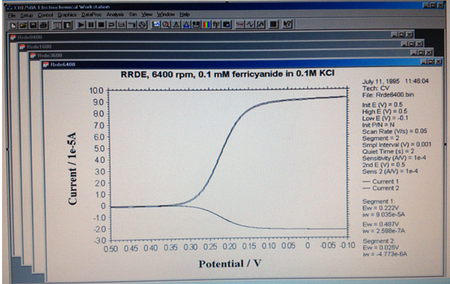 CHI700E除了允許第二工作電的電位獨(dú)立控制在恒定電位外,還允許第二工作電的電位與工作電同步掃描或階躍。雙通道同步掃描時,高掃速可達(dá)10,000 V/s。雙通道同步階躍時,小采樣間隔可達(dá)1微秒。由于CHI700E系列是CHI600E系列的拓展,CHI700E系列還可以配備恒電流儀(CHI760E)。CHI700E系列還允許四電體系,用于液/液界面的電化學(xué)測量。