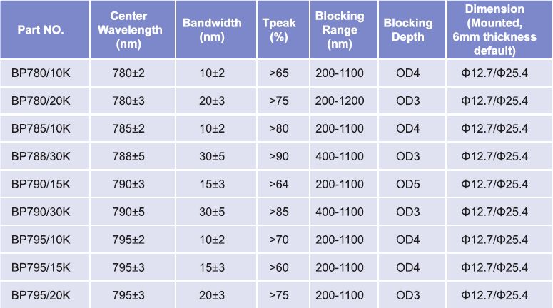 4、庫存:上萬種標準及非標準帶通濾光片產(chǎn)品現(xiàn)貨供應(yīng)