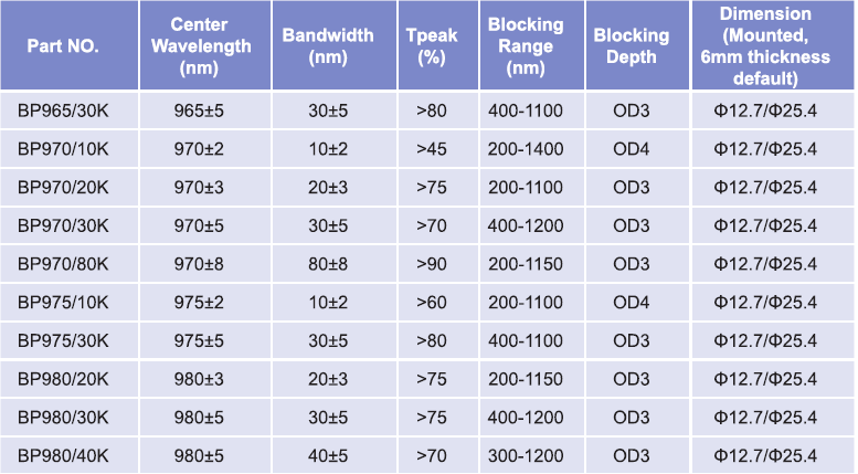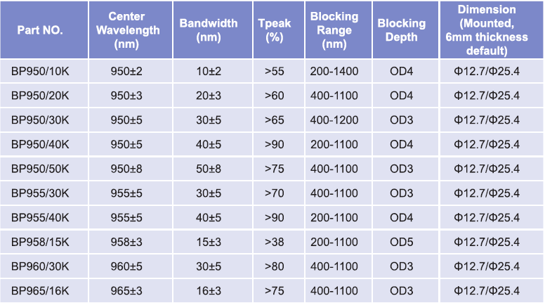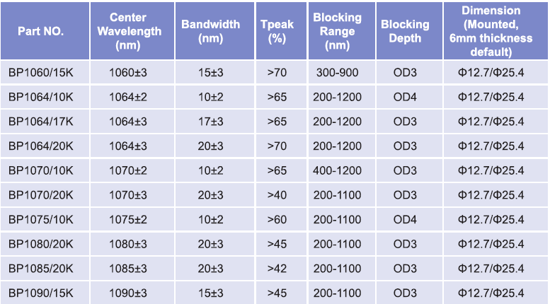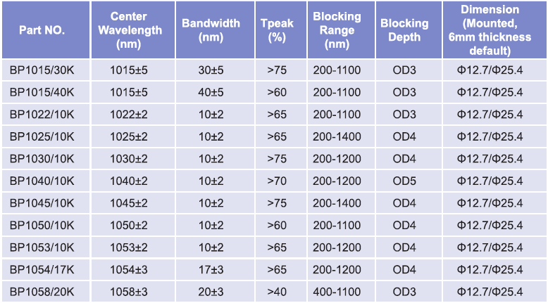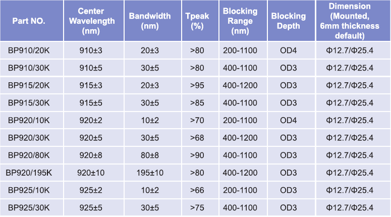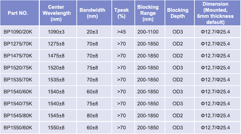 4、庫存:上萬種標準及非標準帶通濾光片產品現(xiàn)貨供應