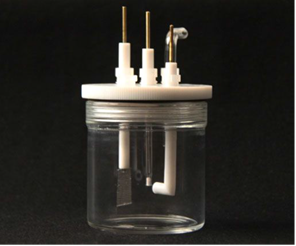 玻璃池體,容積50ml,聚四氟乙烯蓋,三電系統(tǒng),配套進出氣管,可選用魯金毛細管。