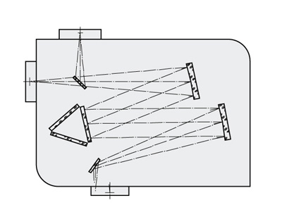 ◆針對紅外(>1μm)波段的優(yōu)化設計,光學鏡片采用鍍金膜設計,提高紅外光反射效率;