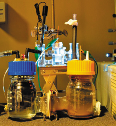 該團(tuán)隊(duì)將太陽能電池與微生物燃料電池巧妙地整合在一起,利用太陽能和廢水中的有機(jī)養(yǎng)分生產(chǎn)清潔能源—氫氣。這一新型裝置首先將太陽能轉(zhuǎn)化為電能,然后將電子傳遞給廢水中的微生物使其有足夠的能量分解廢水中的有機(jī)物。其中的一些細(xì)菌在消耗有機(jī)物的同時產(chǎn)生電子,這些電子通過導(dǎo)線被傳回太陽能用以分解水—生成氫氣和氧氣。實(shí)驗(yàn)證明,廢水中2/3的有機(jī)廢物在兩天之內(nèi)就會被分解掉。盡管凈化之后的廢水還不能直接飲用,但是如果將這一成果應(yīng)用于廢水處理廠將使得生活廢水處理過程大幅簡化,更重要的是與此同時大量生產(chǎn)氫氣這一清潔能源。