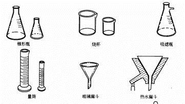 在精細有機合成實驗中使用的一般為標準磨口玻璃儀器。它的用途、容量不同,應注意標準磨口有不同的編號,如 10 號、 14 號、 19 號、 24 號、 9 號和 34 號等。這些編號是指磨口大端的直徑 ( 單位為 mm ,取接近的整數(shù) ) 。洗滌磨口時不得用粗糙的去污粉,以免使磨口擦傷而漏氣。進行真空減壓操作時,磨口處應涂以真空潤滑脂,以免漏氣。一般用途可不涂潤滑脂,以免砧污反應物或產物。若反應中有強堿,則應涂潤滑劑,以免磨口連接處因堿腐蝕粘牢而無法拆開。精細合成實驗所需常用玻璃儀器見圖 2-1 。