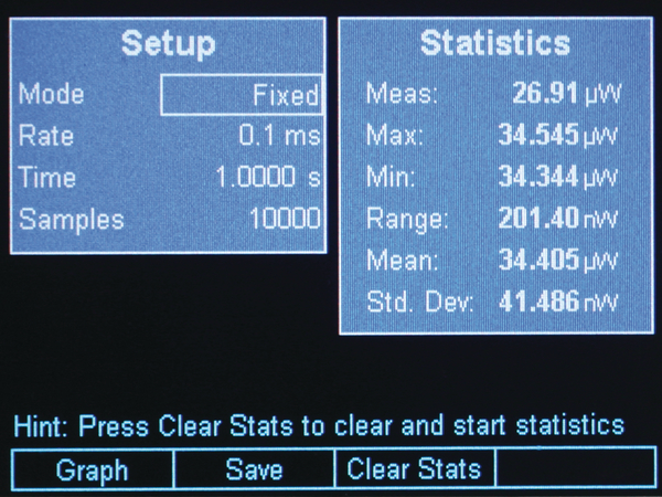 能夠進行脈沖峰間測量,在樣本速率為250 kHz 時,重復(fù)頻率高達4 kHz。脈沖、峰間和DC 光源測量可以W、dBm、dB、J、A、V 和Sun 等為單位進行顯示,取決于使用的探測器類型。